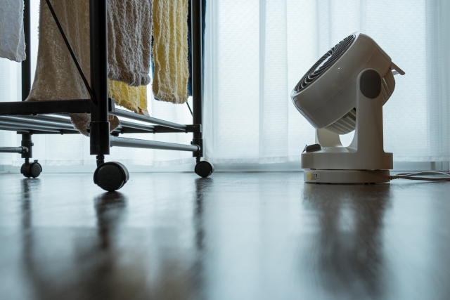 部屋干しにおいて、扇風機やサーキュレーターなどの風は最も即効性のある対策のひとつです。